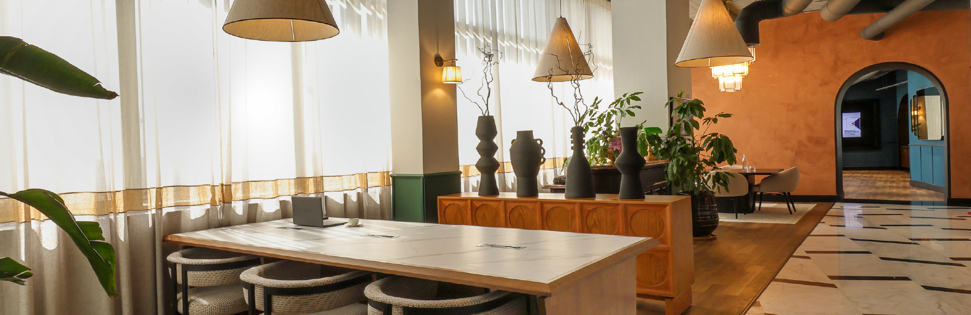 The flexible desk space at KOFISI Casa Anfa is dotted around the Centre featuring a variety of elevated workspace options including Community Kitchens, Breakout Lounges, Phone Booths and plenty of Private Booths for focused work. Members have access to all the Meeting Rooms and Event Spaces at the Centre.